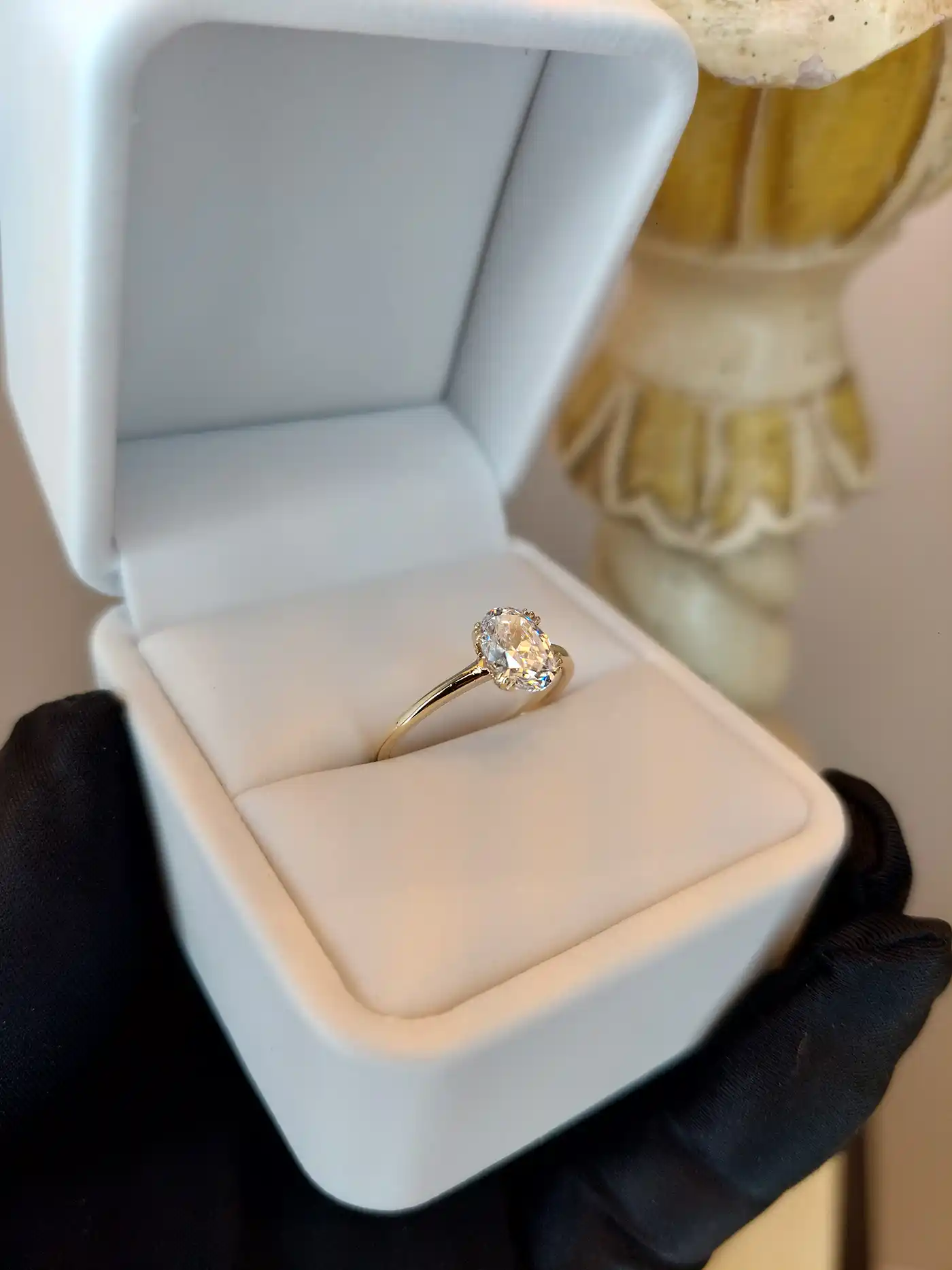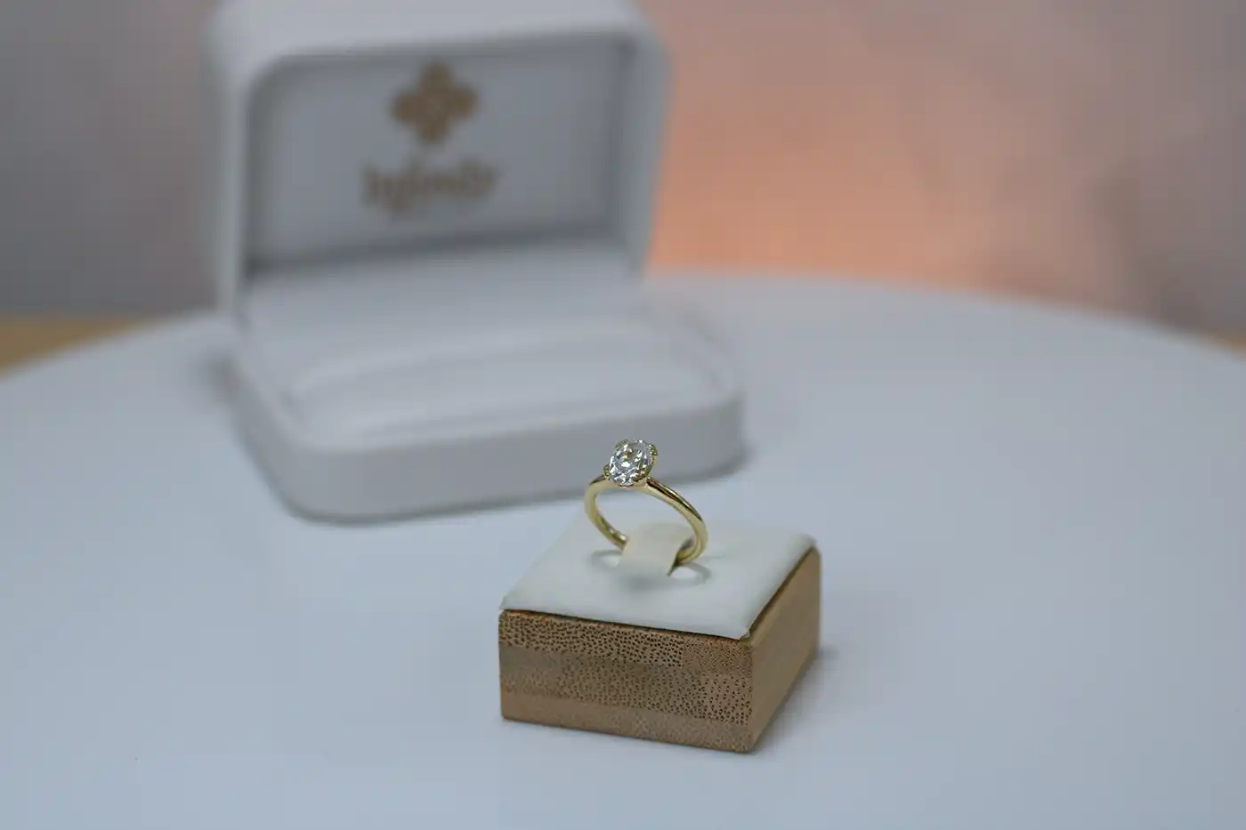 Anillo hilo redondo con piedra central ovalada, uñas garra