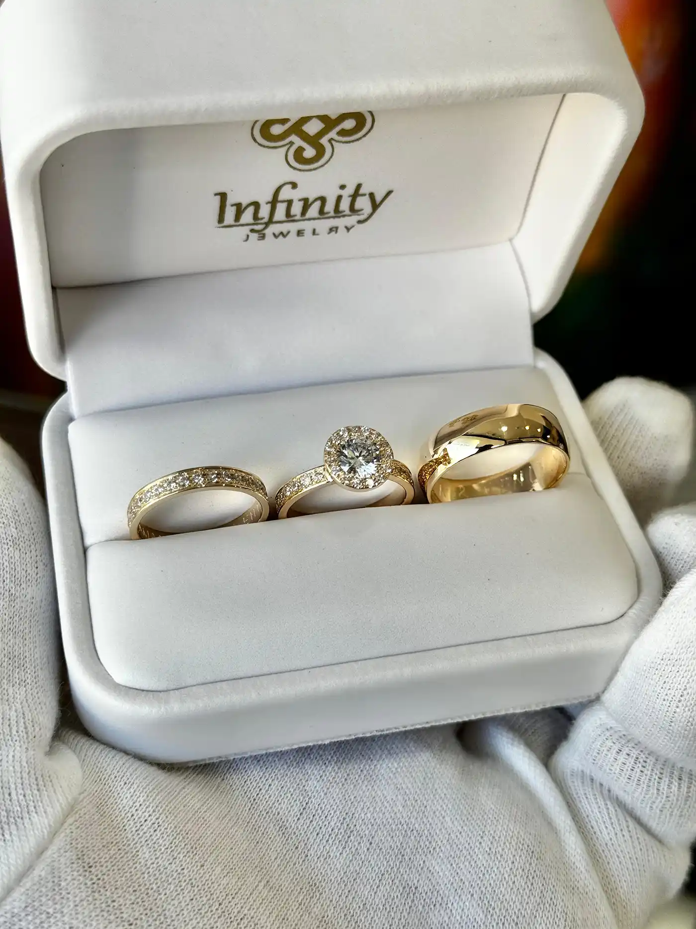 Media caña 5mm Engaste con borde 3mm Anillo compromiso Halo con borde 6mm